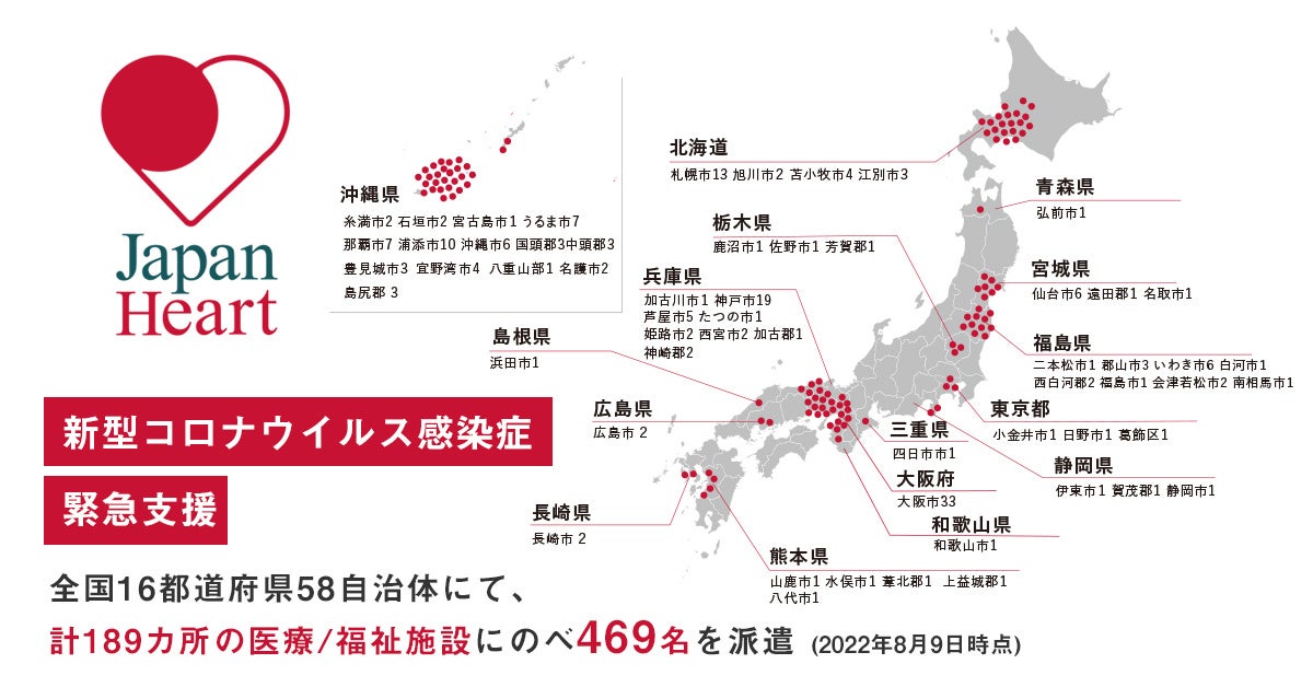 ジャパンハートは今回の第7波において、早い段階から感染拡大していた沖縄県に4月より支援に入ったことを皮切りに、今日までの約4カ月間で全国36カ所への支援を実行しています。