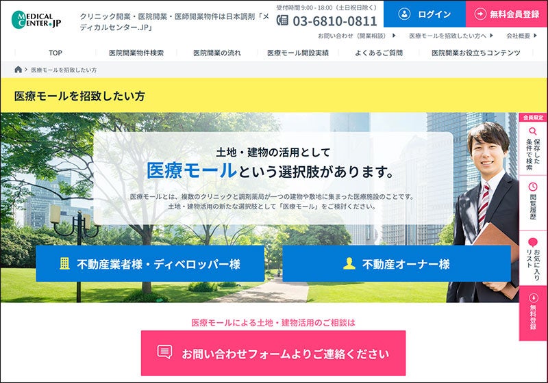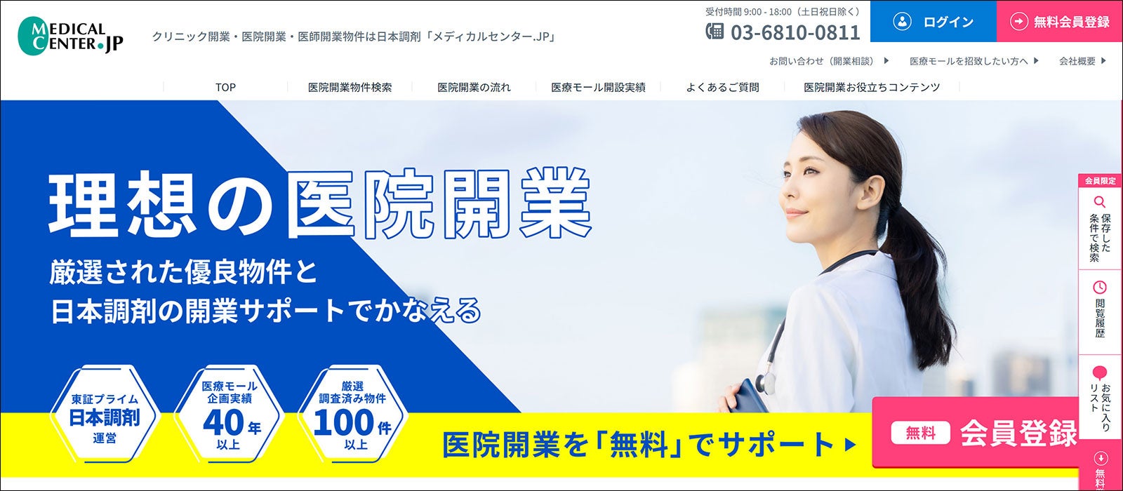 日本調剤の医院・クリニック開業支援サイト「メディカルセンター.JP」が全面リニューアルしました