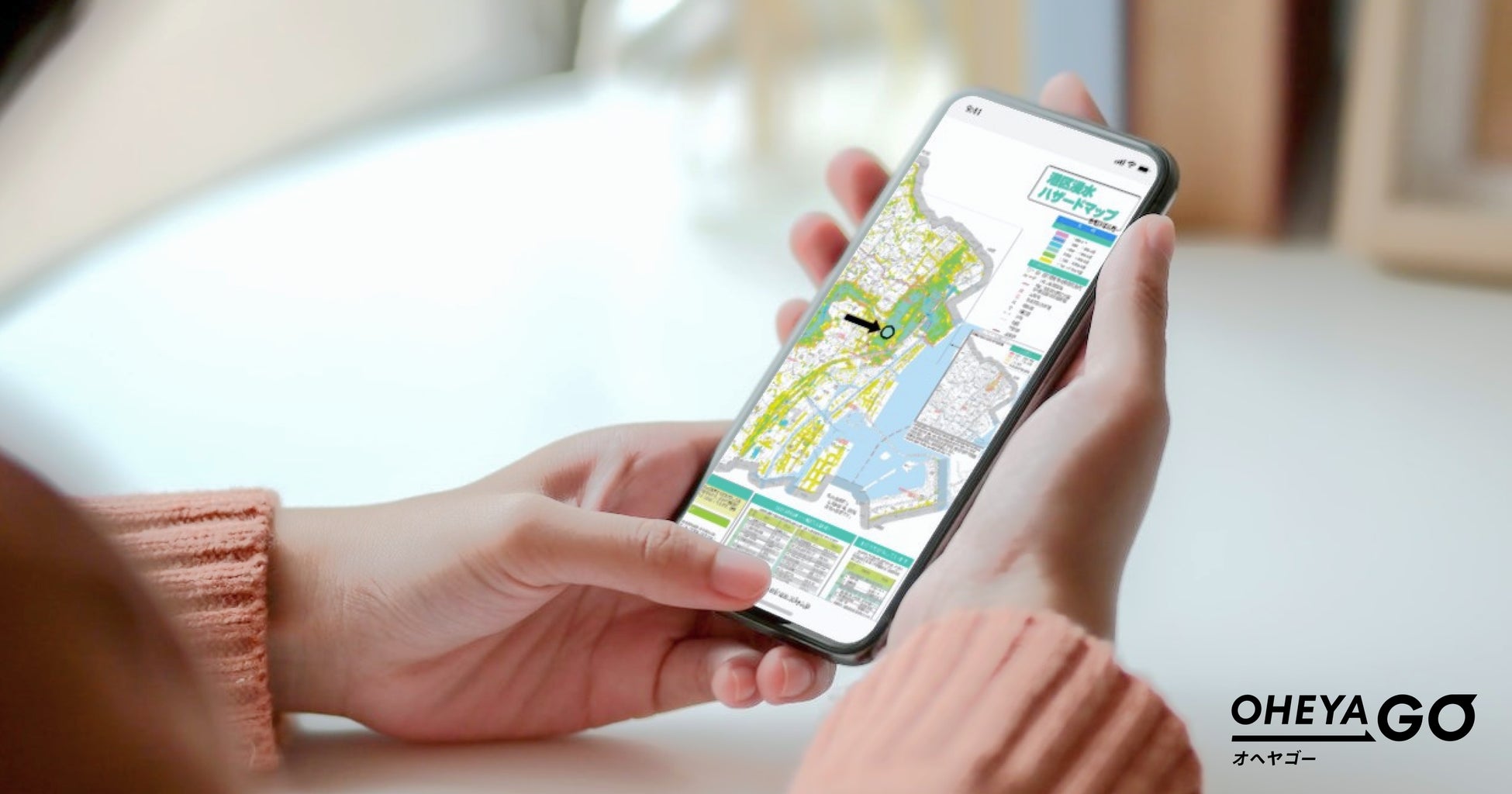 賃貸借契約時ではなく、部屋を探す段階で手間なく分かりやすくハザードマップが閲覧できることが、入居希望者のメリットになると考え、 2022年8月より「OHEYAGO」はハザードマップ表示機能を提供しています。本機能により、入居希望者は「OHEYAGO」の物件詳細ページから、物件所在エリアが分かりやすくマーキングされたハザードマップを閲覧し、部屋探しの参考にすることが可能です。