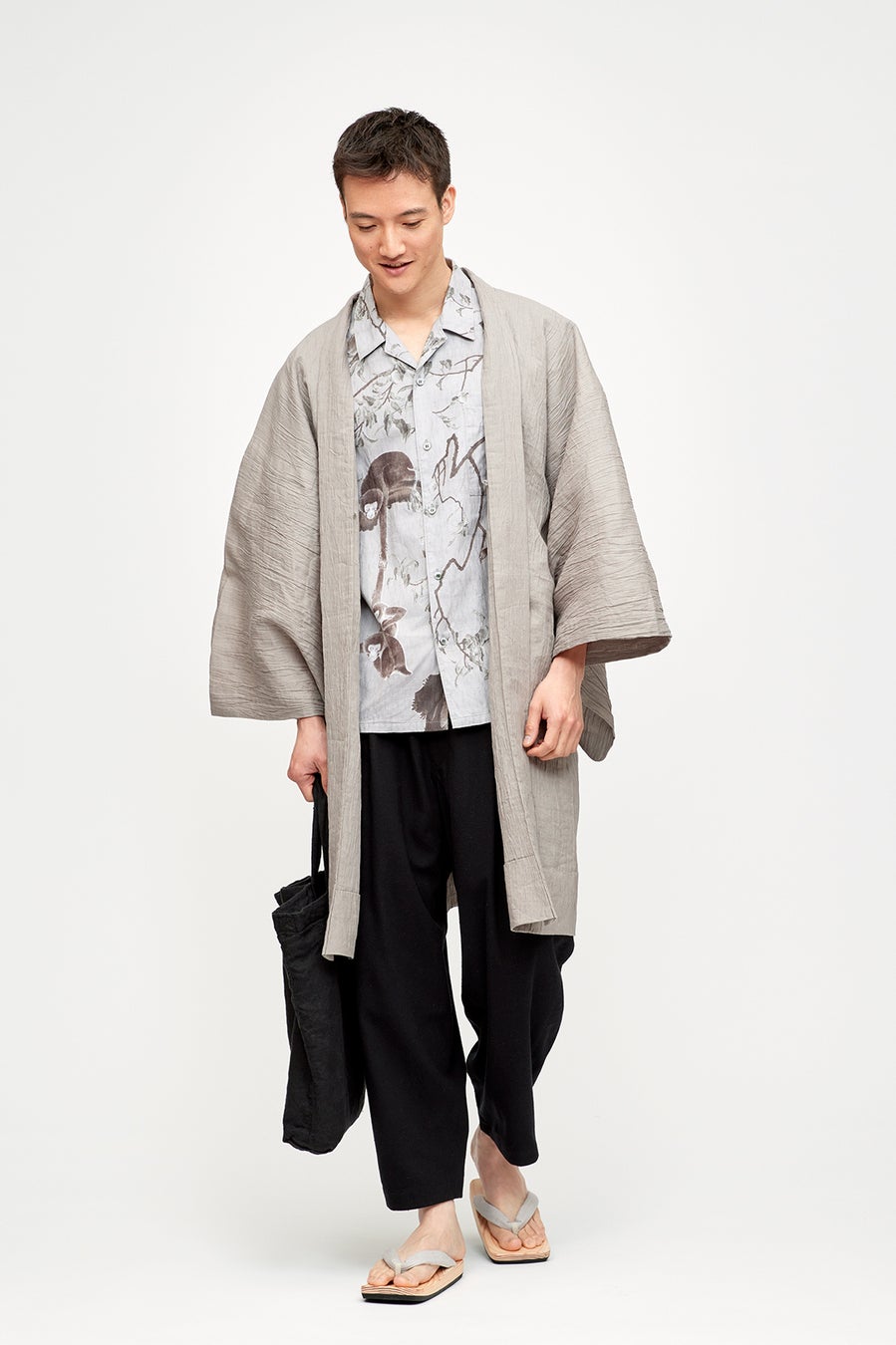 シャツ(右):オープンカラー半袖シャツ / 型染め / 伊藤若冲 / 猿猴摘桃図 / GRAY