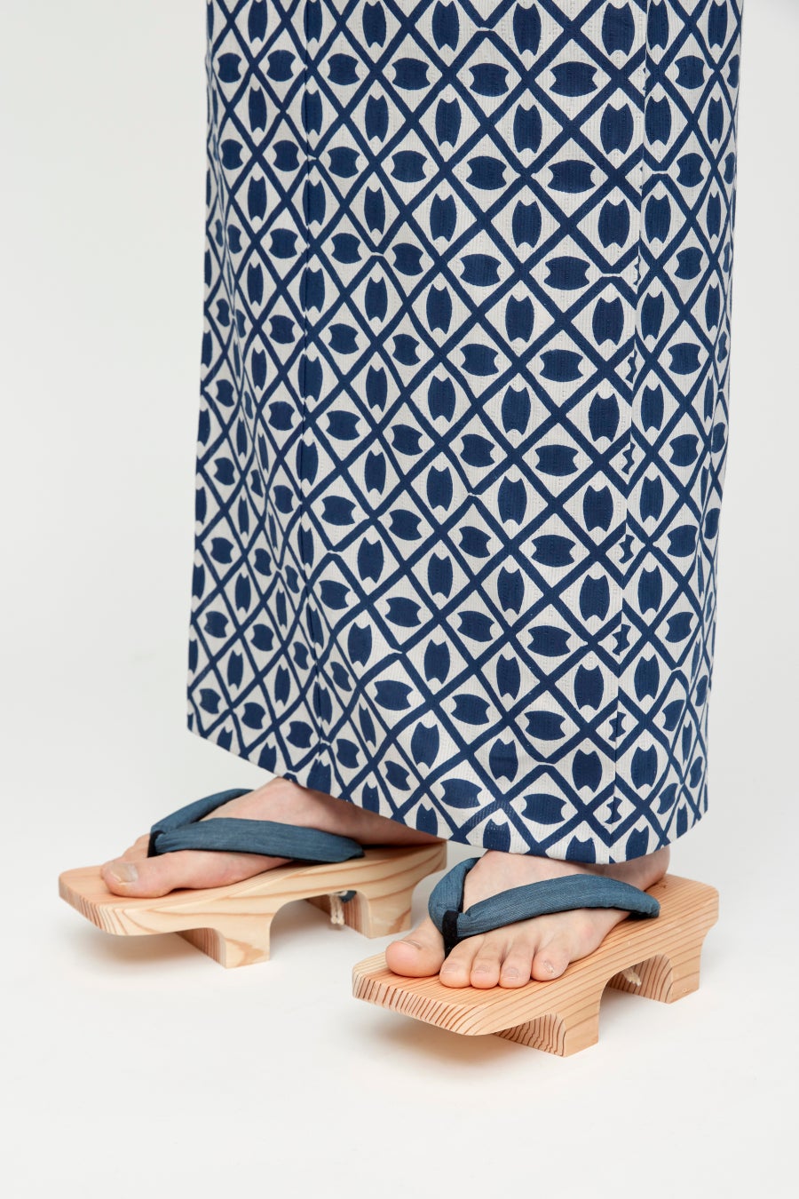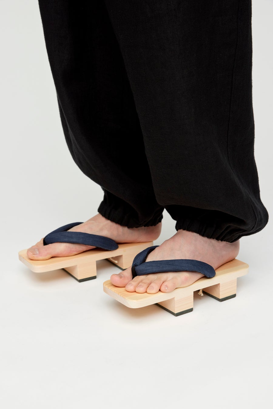 大分県日田市で杉材を用いて製作された下駄は、昭和23年創業の本野はきもの工業に別注したもの。