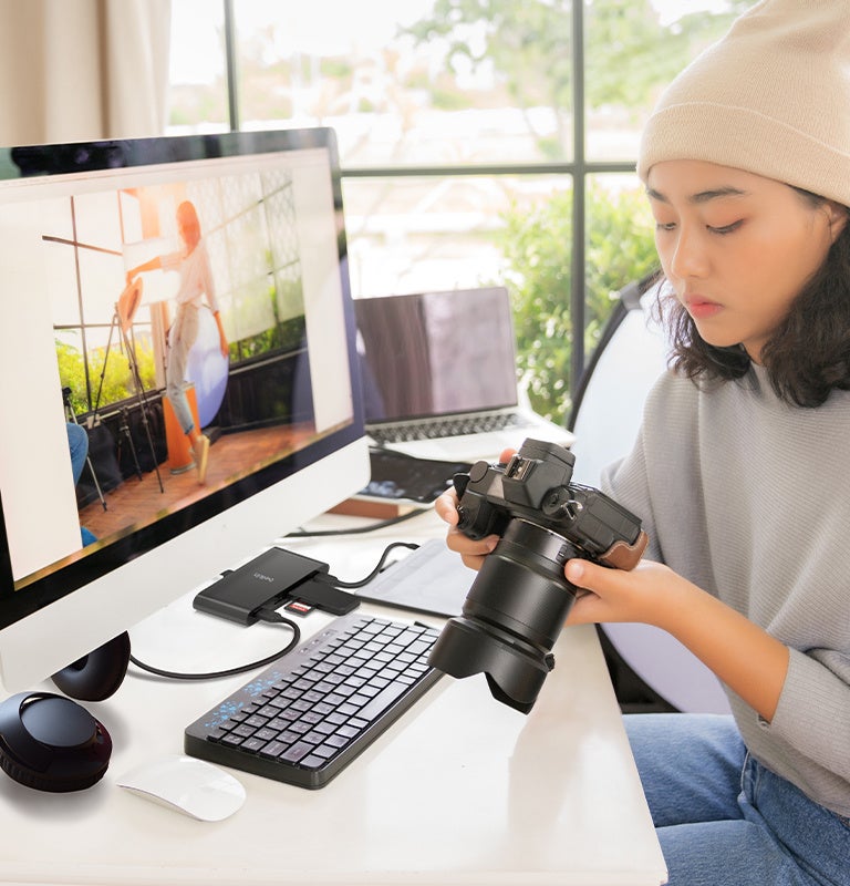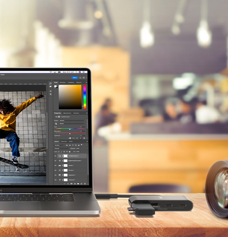 本製品は、4つのUSB-Cポートを搭載しており、カメラ/ウェブカメラ、キーボード、マウス、外部SSDなどのUSB-C機器を迅速かつスムーズに接続できます。コンパクトなデザインでありながら、全ポートは最大10Gbpsの高速データ転送を実現し、市場に出回っている他のハブと比べて2倍のスピードを誇ります。大容量のファイルの転送や高解像度のコンテンツの再生においてもスムーズなパフォーマンスを発揮し、USB-Cヘッドフォン、スピーカー、オーディオインターフェースなど、オーディオ関連のデバイスもサポートしています。また、Fast Role Swap(FRS)機能も搭載しており、ハブへのUSB電源の接続や切断時にデータの破損や接続の中断を防ぎ、データの安全性を最大限に保護できます。常時データ転送や過酷な環境で作業するシーンで安心なデータ転送を望むユーザーに最適です。