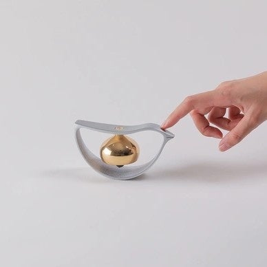 高岡銅器の職人たちの技で、一つ一つ創り上げられたおりん。ゆりかごのような本体を揺らすと、澄んだ音色が響きます。