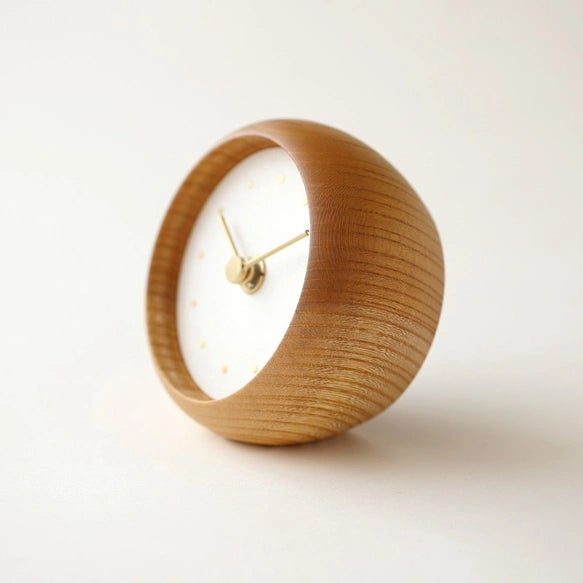 400年以上の歴史を持つ石川県加賀山中の“ろくろ引き”技法で作られた、ケヤキの木目が美しい置時計。色が選べるので、お母さんの好きな色を贈ることができます。