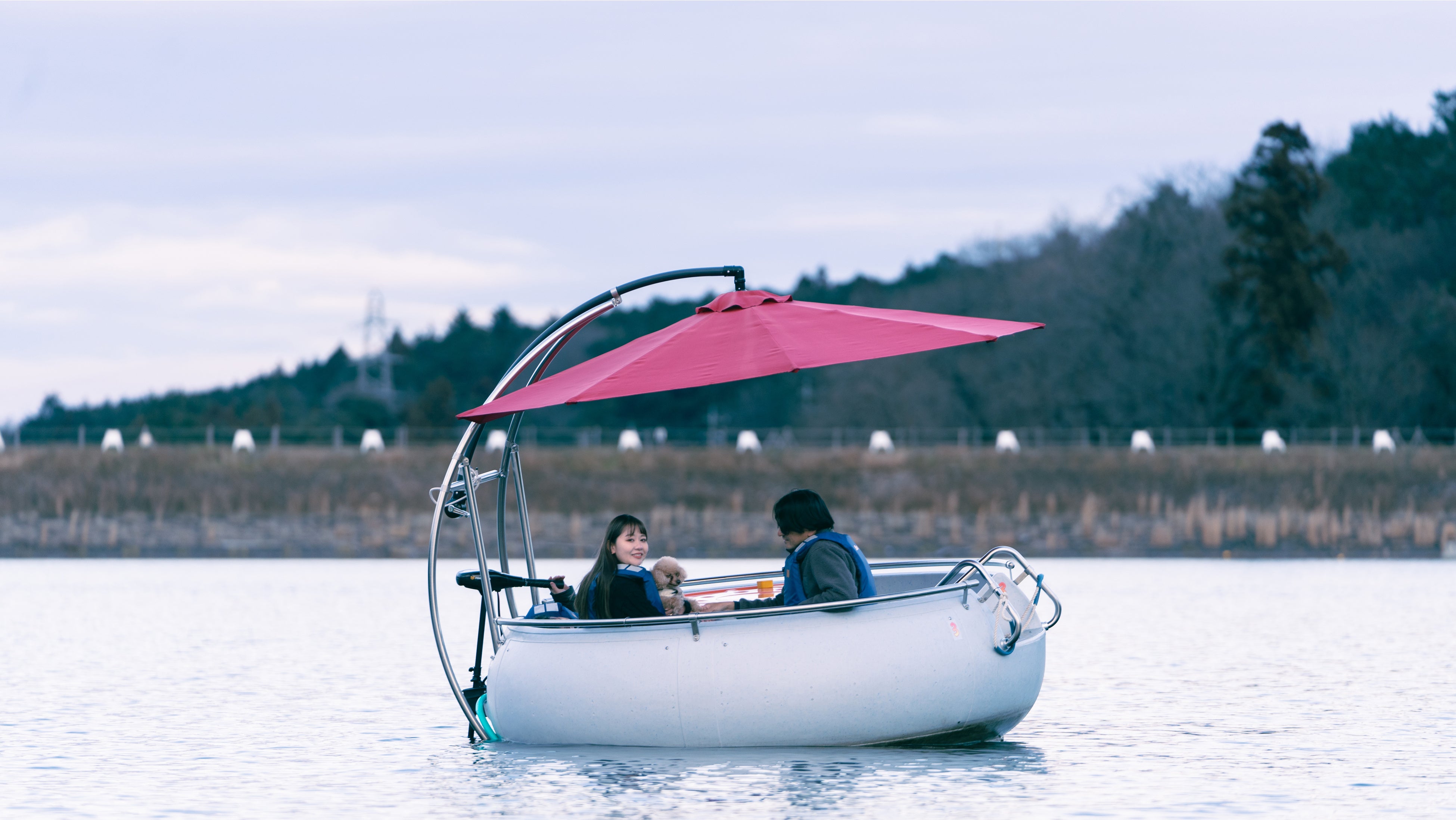 - 小型・中型・大型、すべてのワンちゃんと楽しめる湖上のボート「ワンワン号」!