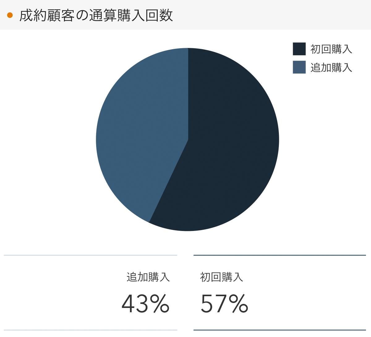 成約顧客のうち、初回購入は57%(前月比4ptダウン)で、以前購入されている方の追加購入は43%となりました。追加購入の割合は、先月に続きマンスリーレポート開始以来最も高い割合となっています。