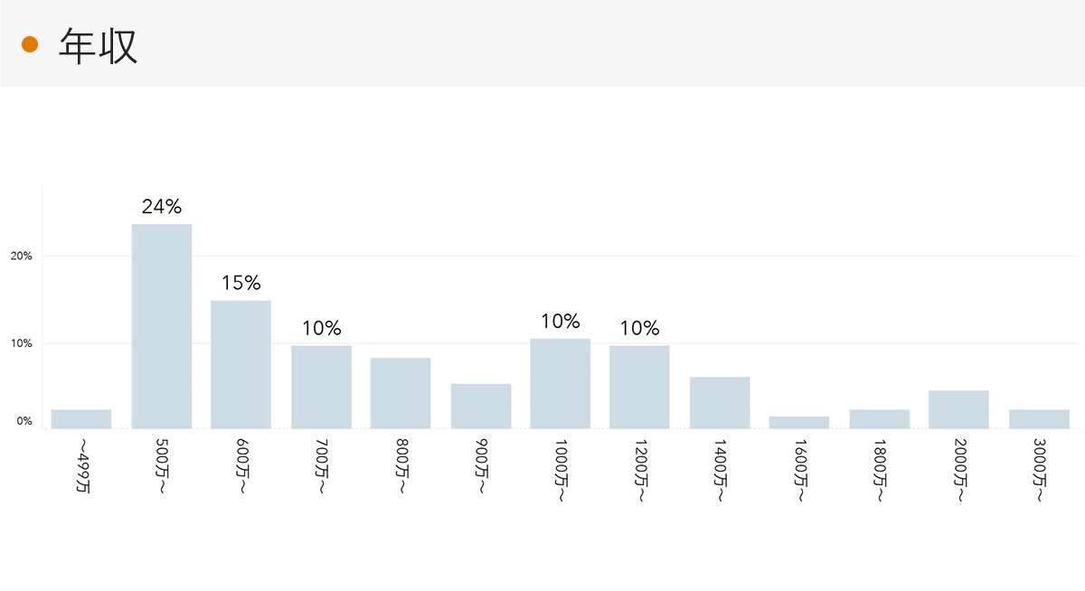 - 成約顧客の年収帯は、500万円台が24%で過去最高値を記録