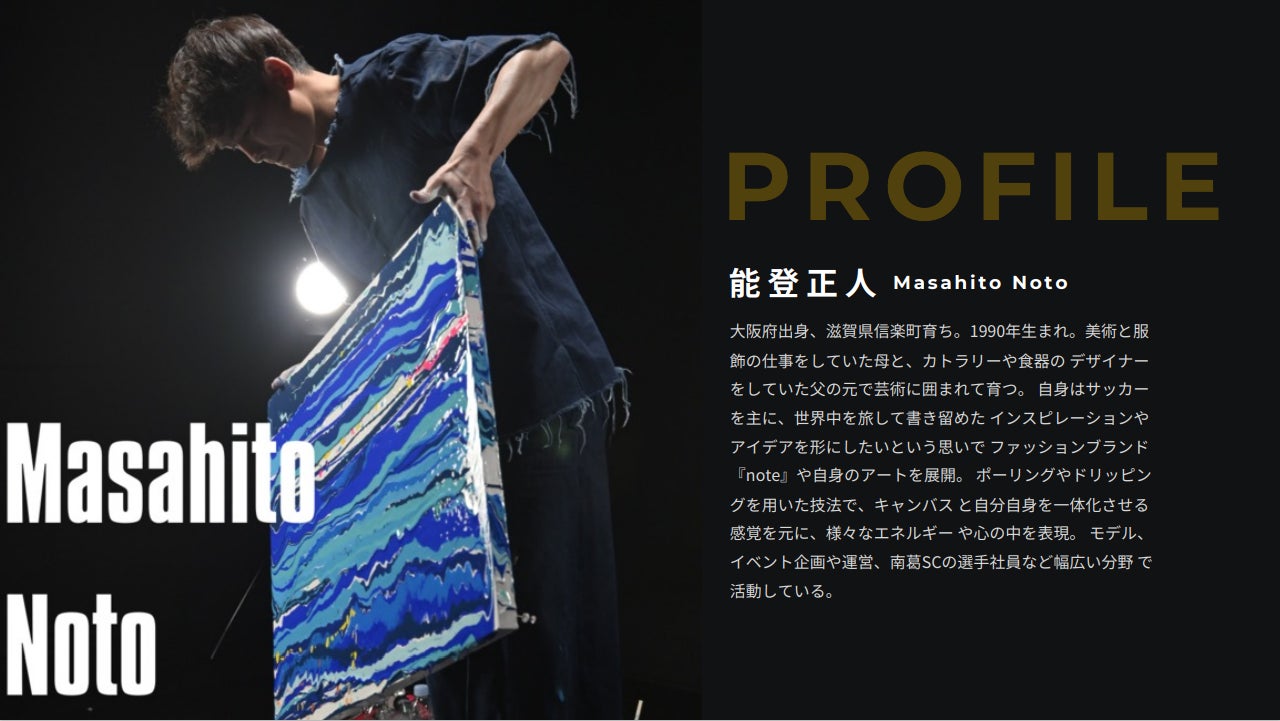 自身はサッカーを主に、世界中を旅して書き留めたインスピレーションやアイデアを形にしたいという思いで、ファッションブランド『note』や自身のアートを展開。