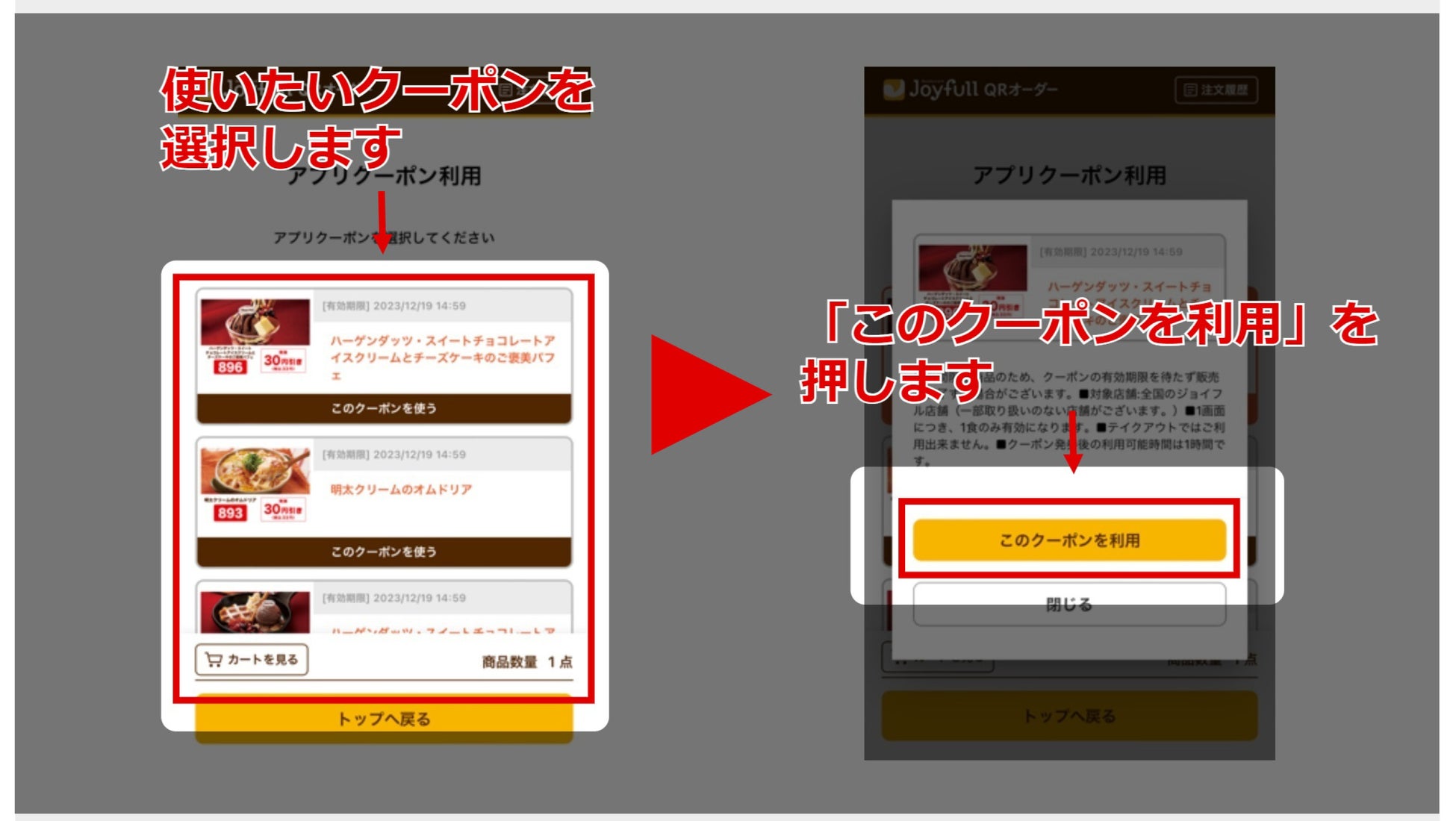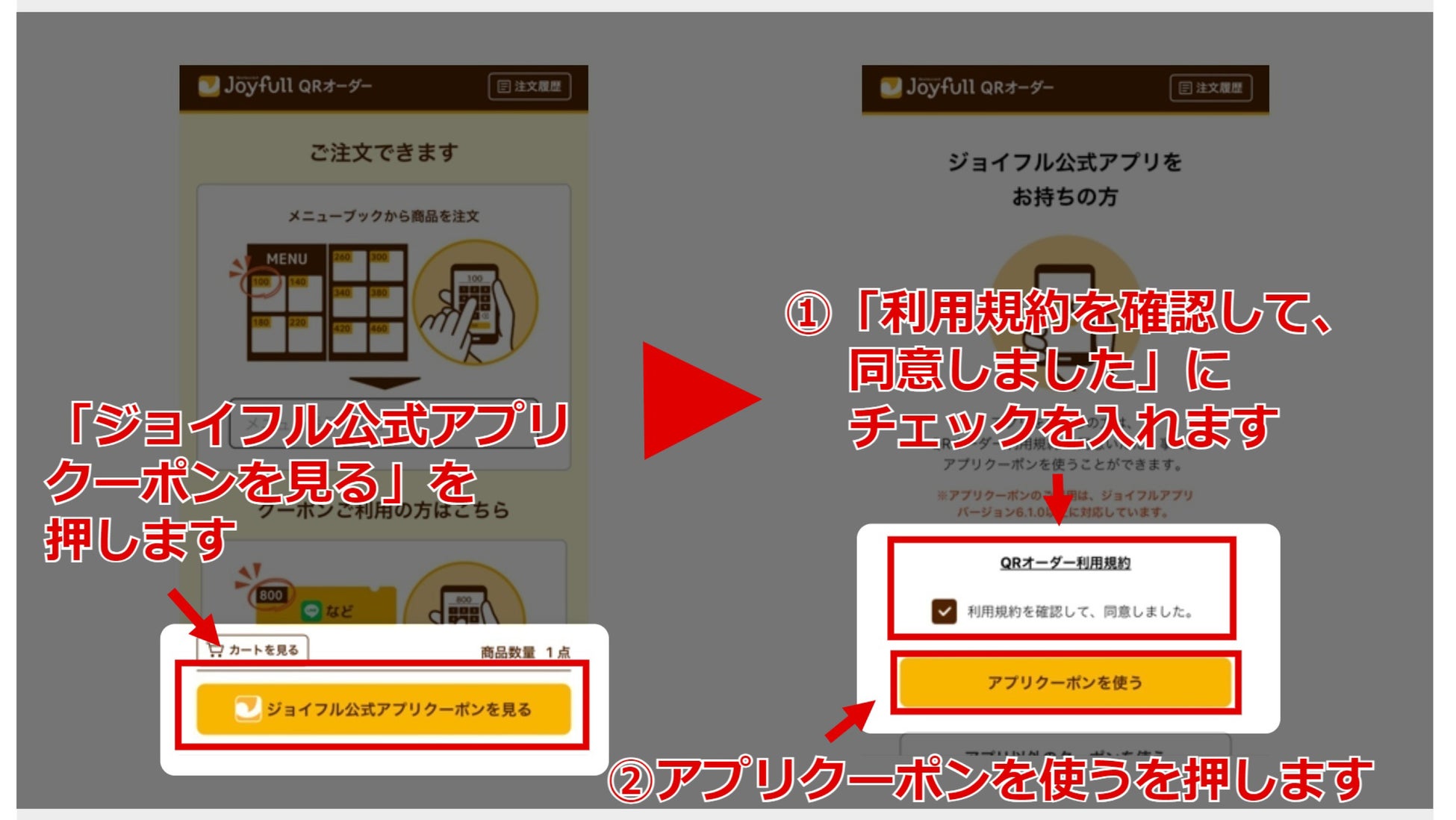 「ジョイフル公式アプリ」以外のクーポンの場合