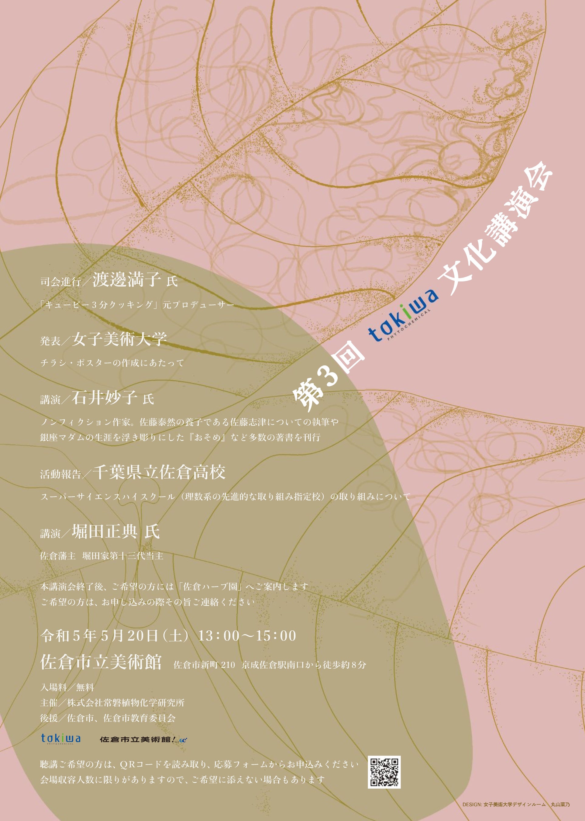 【千葉県佐倉市】佐倉の魅力を再発見しよう!「第3回tokiwa文化講演会」(5/20)
