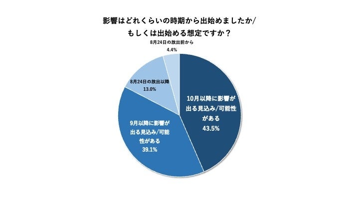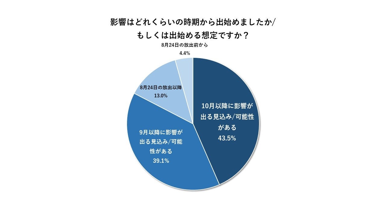 ・39.1%が「9月以降に影響が出る見込み」、43.5%が「10月以降に影響が出る見込み」と回答。