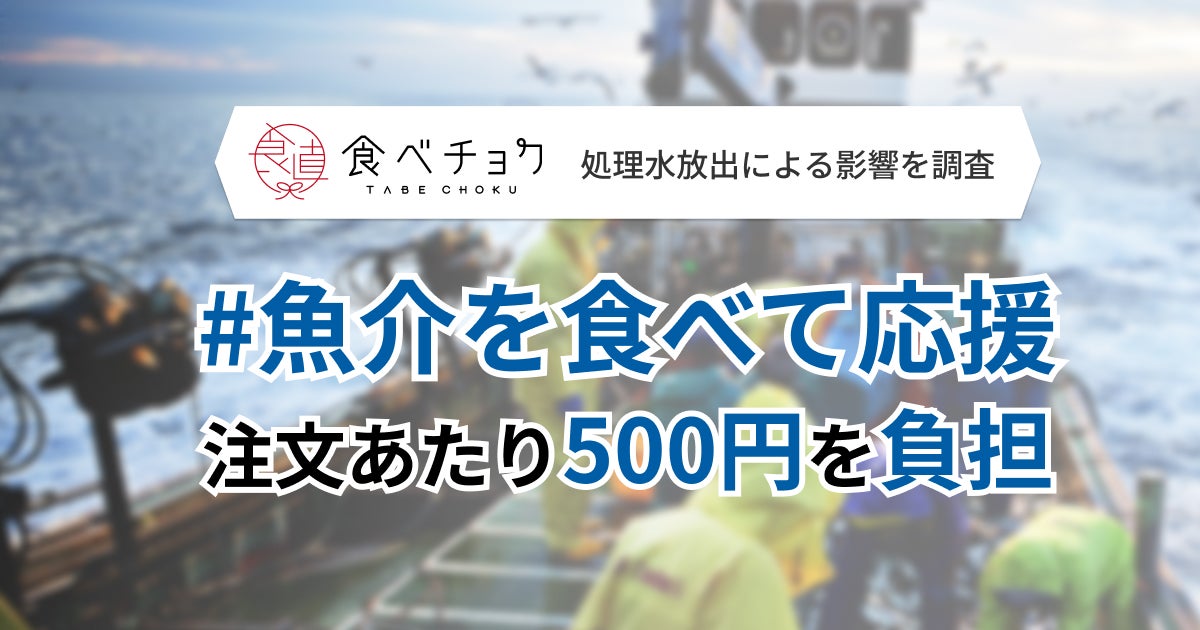 被害の全容がまだ見えない中ではありますが、経営への影響が懸念される漁業者を応援するために、水産物の注文あたり500円を食べチョクが負担する「#魚介を食べて応援 プログラム」を開始しました。8月31日(木)〜9月30日(土)まで、食べチョクに出品されている水産物を注文あたり500円OFFで購入できます。