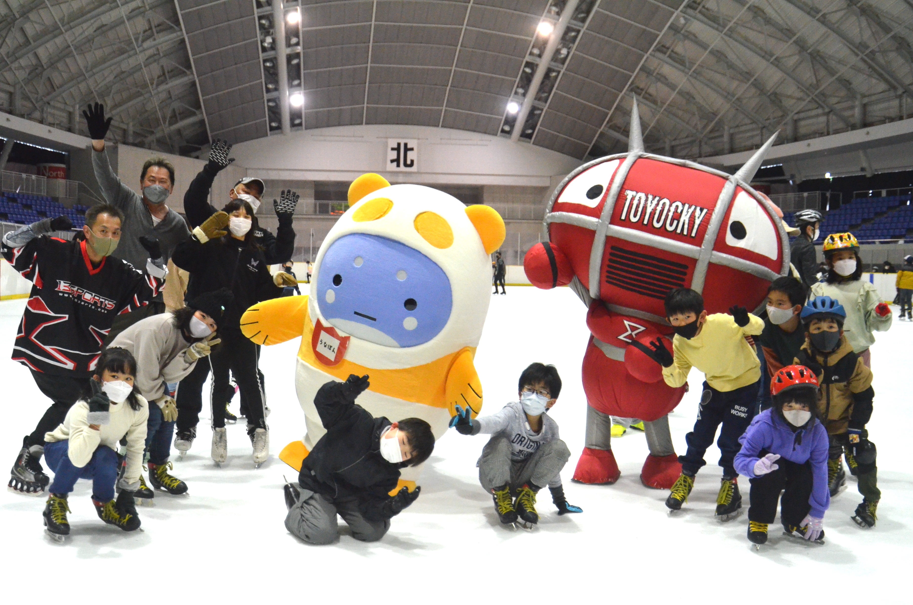 最後に2人はスケートリンクで記念撮影。滑っていた人たちも加わり、みんなでポーズを決めました。