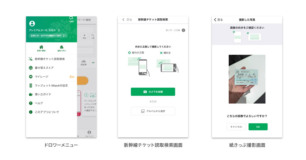 新幹線のきっぷをスマホのカメラで撮影、その新幹線を使用したルート検索が可能
