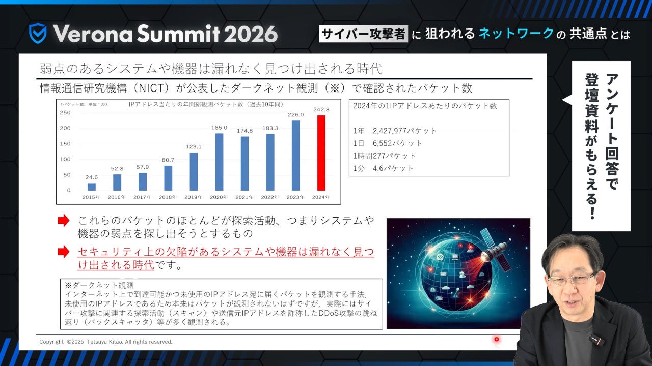 株式会社網屋(東京都中央区 / 東証グロース:4258 / 以下、網屋)は、2026年2月26日(木)に開催したオンラインイベント「Verona Summit 2026 ~サイバー攻撃者に狙われるネットワークの共通点とは~」のアーカイブ動画を、3/12(木)までの期間限定で公開します。