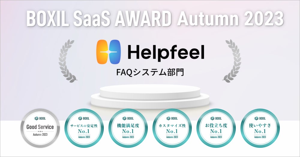 ヒット率98%の検索型FAQ Helpfeelが「BOXIL SaaS AWARD Autumn 2023」FAQシステム部門で6つの賞を受賞