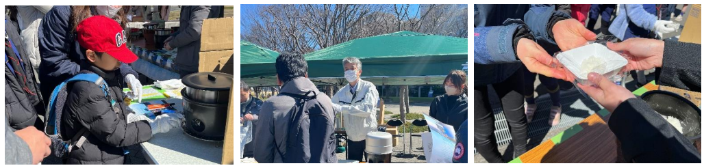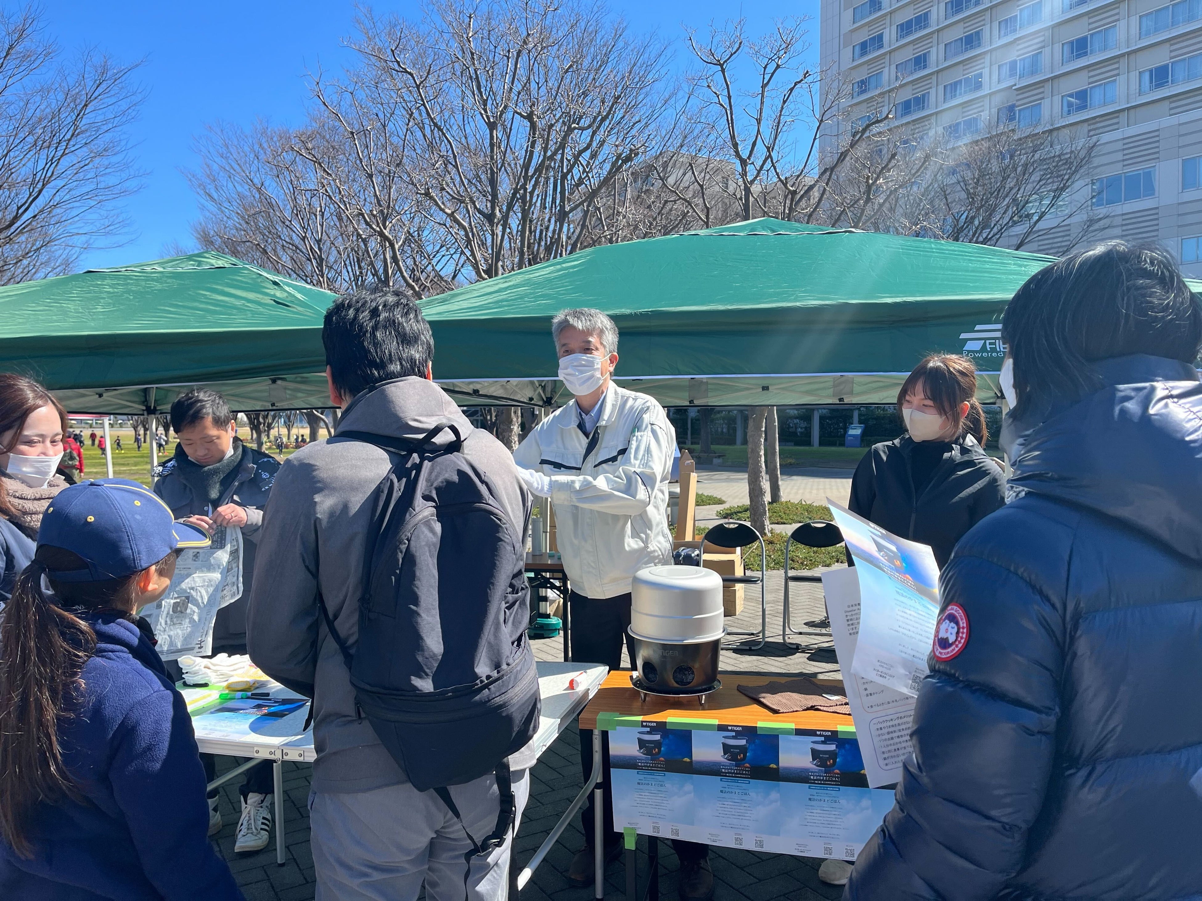 「東京防災DAYS 2024」で、当社は昨年10月に発売開始した「魔法のかまどごはん」の炊飯体験、試食を行いました。本製品は燃料に新聞紙を使うことで、電気を使用せずに簡単に炊きたてのごはんが炊けるので、有事の際に大きな助けとなることが期待されています。被災後ライフライン復旧までの間に電気やガスを使わなくても、新聞紙に火をつけることの繰り返しで簡単に「炊きたて」のごはんが食べられる防災炊飯を体験した参加者の皆さんは、「新聞紙でごはんが炊けるの?」と興味津々の様子で、炊飯体験に参加。実際に新聞紙を「魔法のかまどごはん」に投入し火をつける体験をした子どもたちは、最初は緊張しつつも上手く火がつくとほっとした表情になり、炊きあがったごはんを試食して「おいしい!」と頬張る様子が見られました。また保護者の方は「想像以上においしく炊けていてびっくりした」「普段からアウトドアで使ってもしもの時に備えるのに良さそう」「いざという時にこれが1台あれば安心できそう」と、被災時に役立つ商品の良さを実感いただけた2日間となりました。