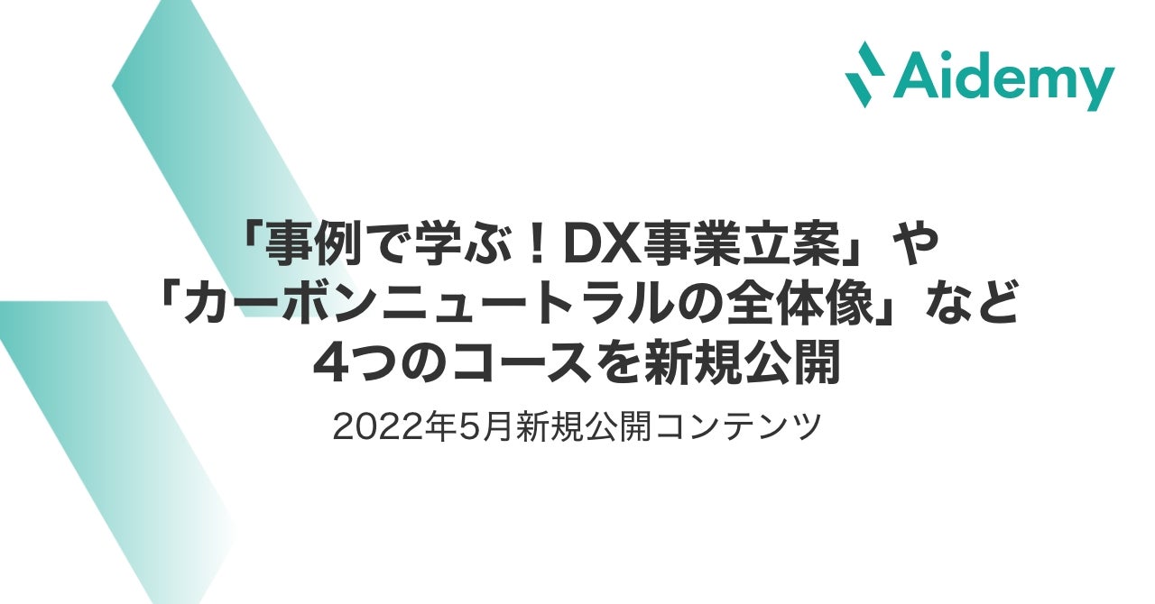 AIを中心としたDX人材・GX人材の育成から実運用まで一気通貫で支援する株式会社アイデミー(本社:東京都千代田区、代表取締役執行役員 社長CEO 石川聡彦、以下「アイデミー」)は、2022年5月の新規公開コンテンツとして新たに4コースの提供を開始いたしました。