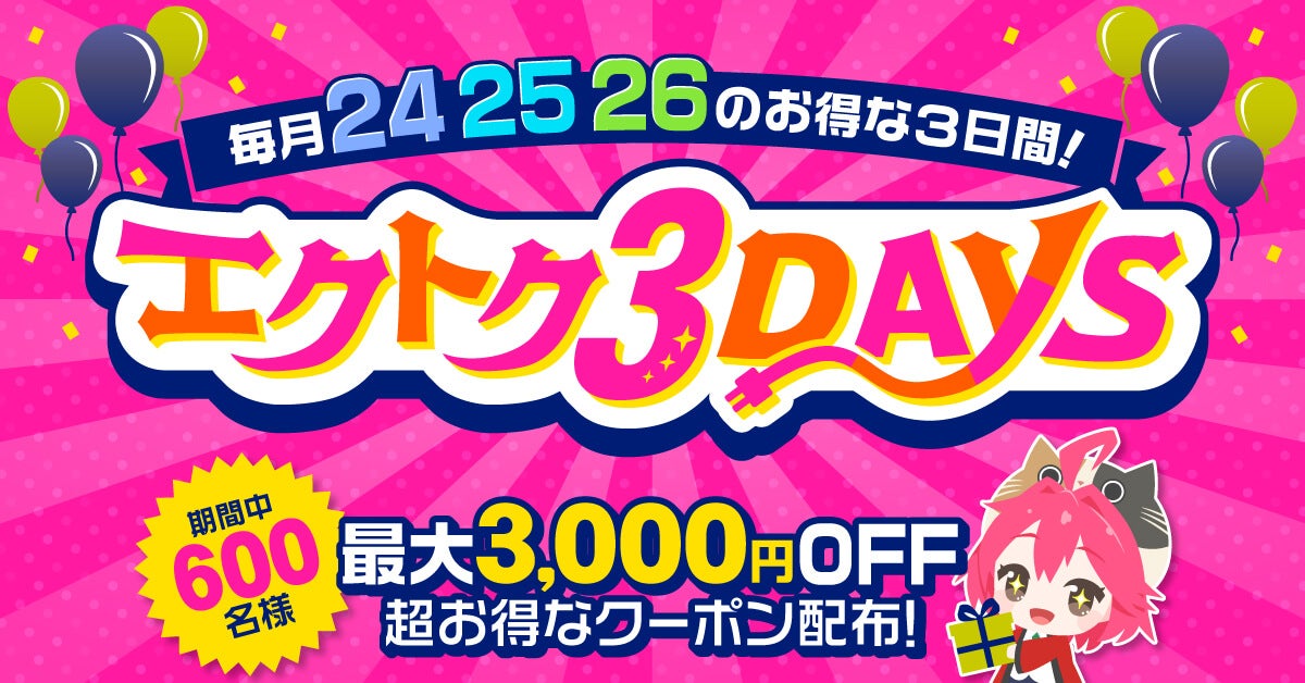 ▼毎月24・25・26のお得な3日間!エクトク3DAYS
