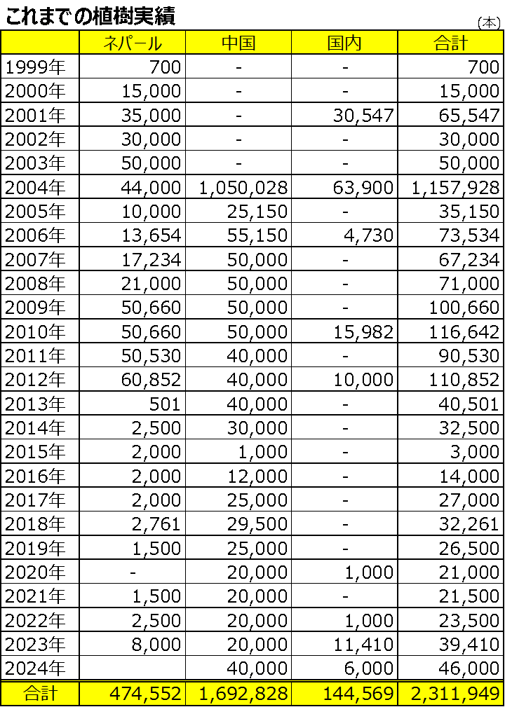 これまでに国内外合わせて231万本を超える木を植えてきました。