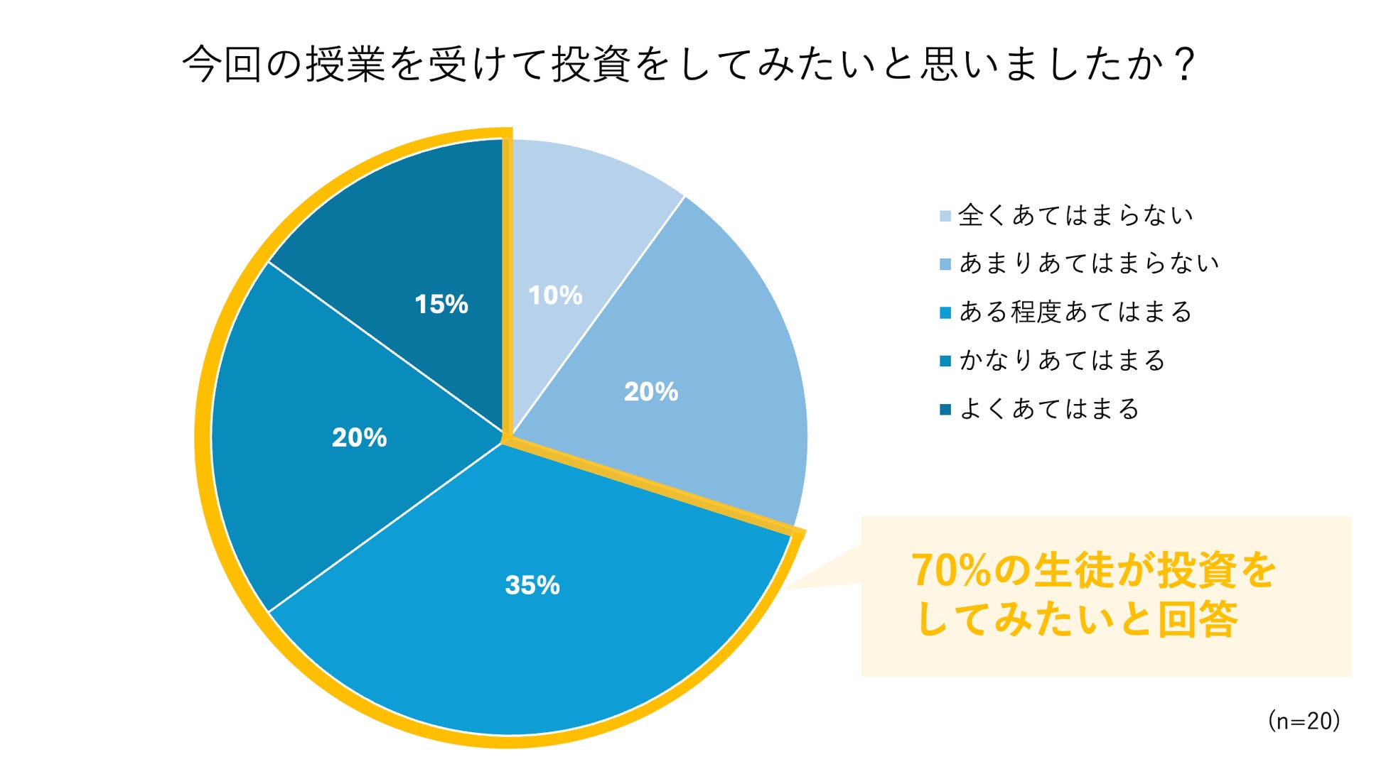 授業後70%の生徒が今後投資をやってみたいと投資に対して前向きな考え