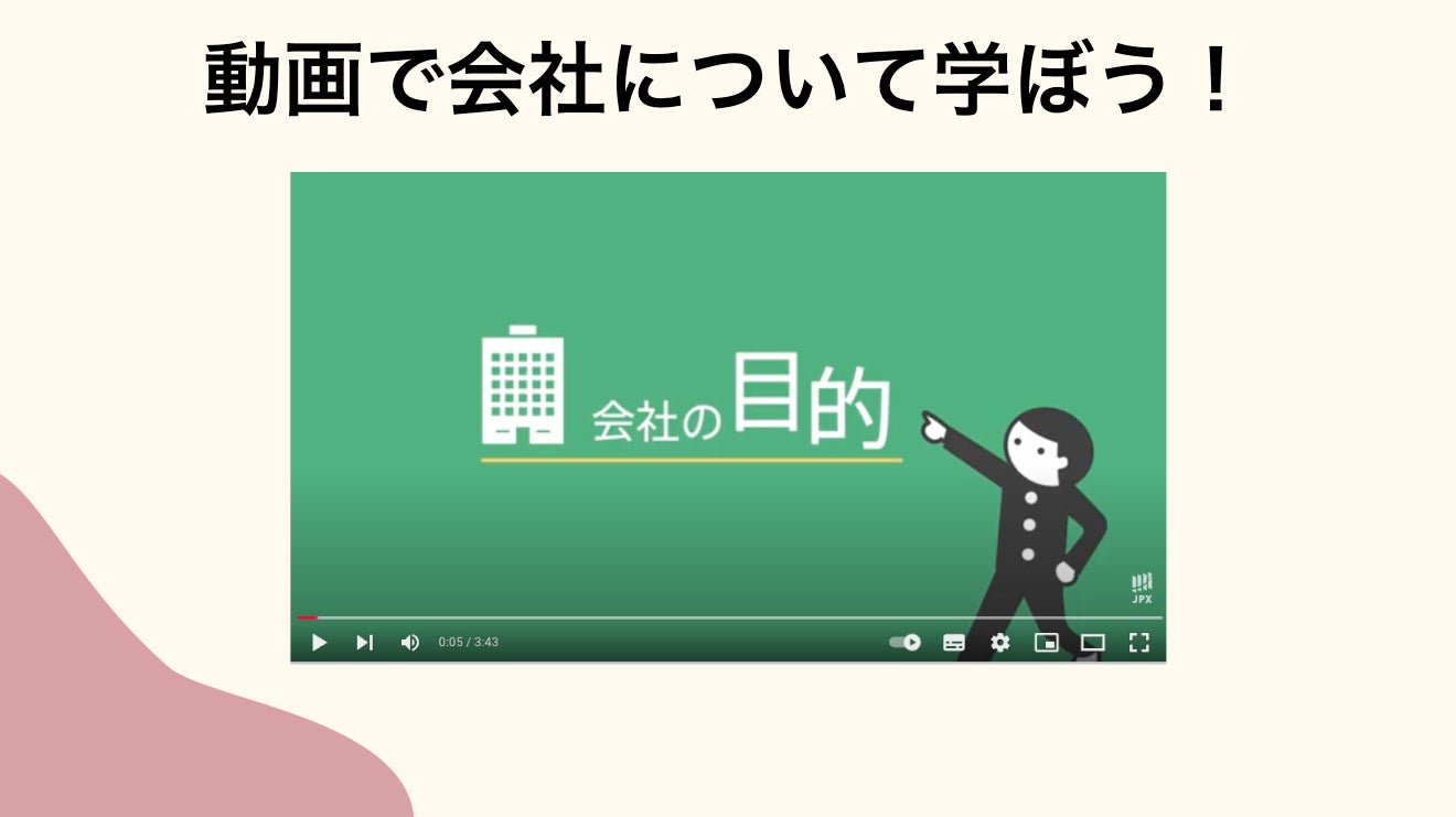 身の回りにある商品やサービスから、それらを提供している会社を考え、動画も交えながら企業の目的や役割を知る