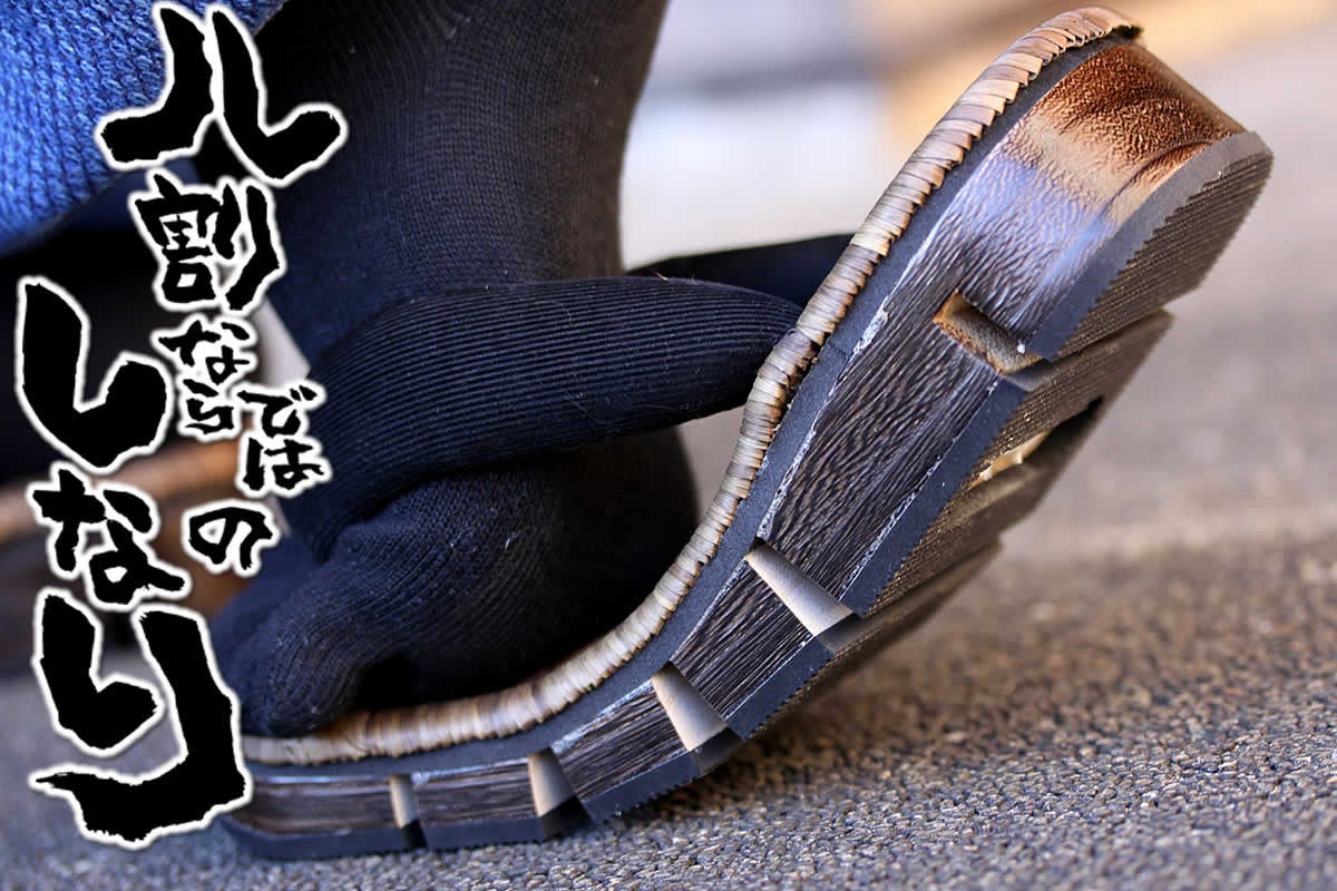 八割下駄は、通常の下駄より足に馴染んで歩きやすいように下駄の台に切り込みを入れており、歩行時の安定感も抜群。素足でも靴下でも快適に履くことができるため、夏祭りや花火大会などのイベントはもちろん、日常のお出かけにも活躍します。下駄台には天然木を使用し、底面には滑り止めのゴムが貼られているため、歩いた時の音が静かで耐久性も向上させています。