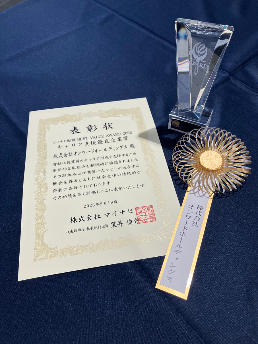 株式会社オンワードホールディングス(本社:東京都中央区 代表取締役社長:保元 道宣)は、この度株式会社マイナビが運営する総合転職情報サイト『マイナビ転職』主催の「マイナビ転職BEST VALUE AWARD 2026」において「キャリア支援優良企業賞」を受賞しました。