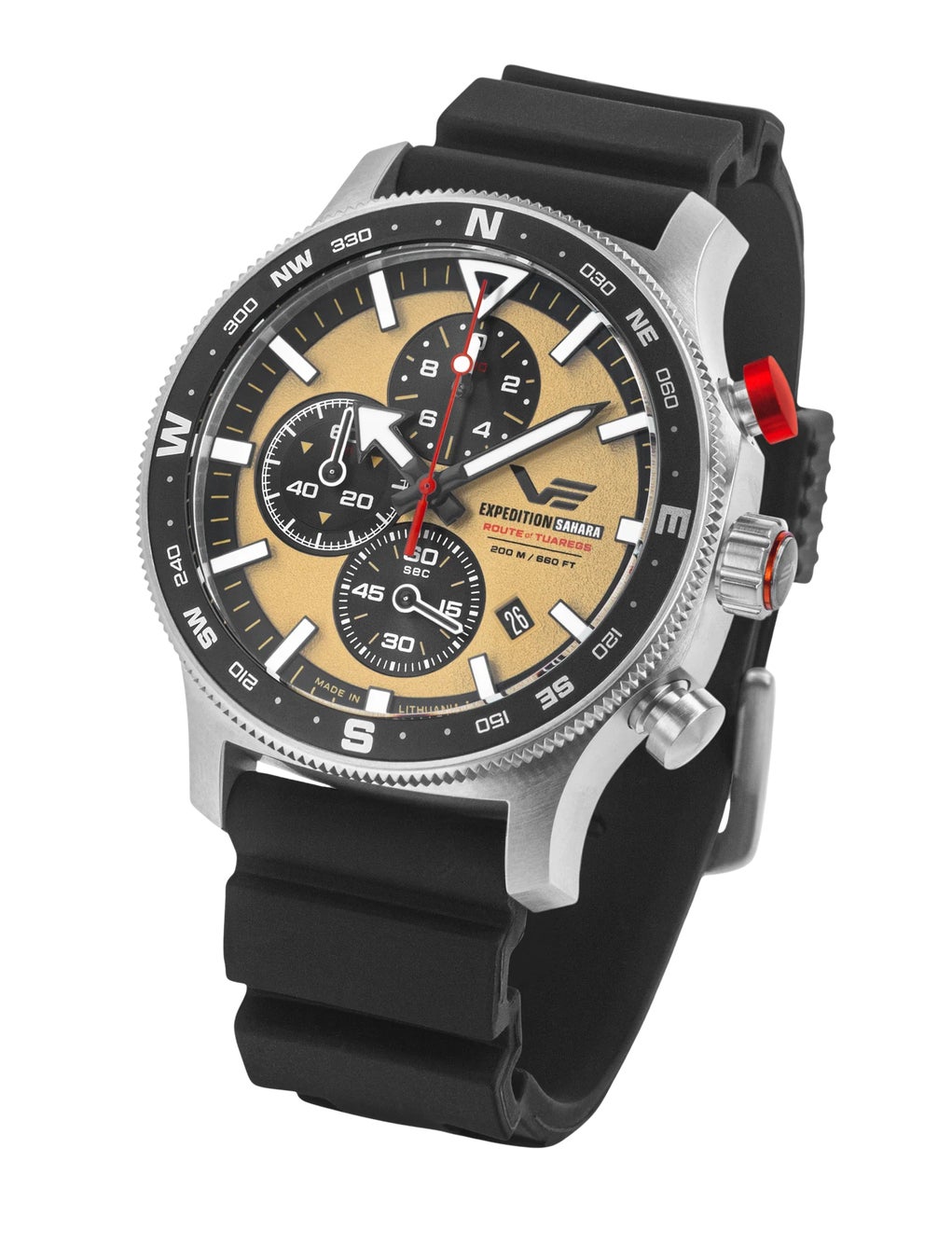 彼自身がサハラ横断遠征「トゥアレグのルート」でこのモデルを着用し、性能と堅牢性を証明しています。