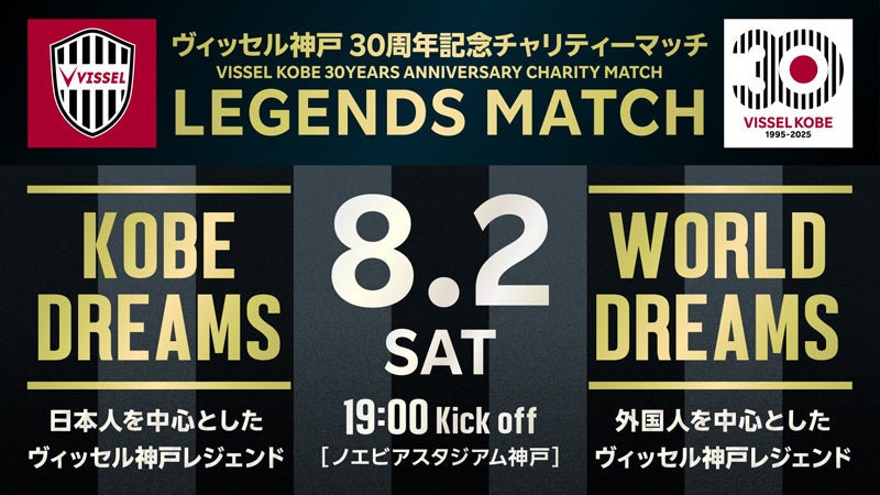 8月2日(土)にノエビアスタジアム神戸で開催する、ヴィッセル神戸30周年記念チャリティーマッチ「LEGENDS MATCH」の第1弾参加者が決定しましたので、お知らせいたします。