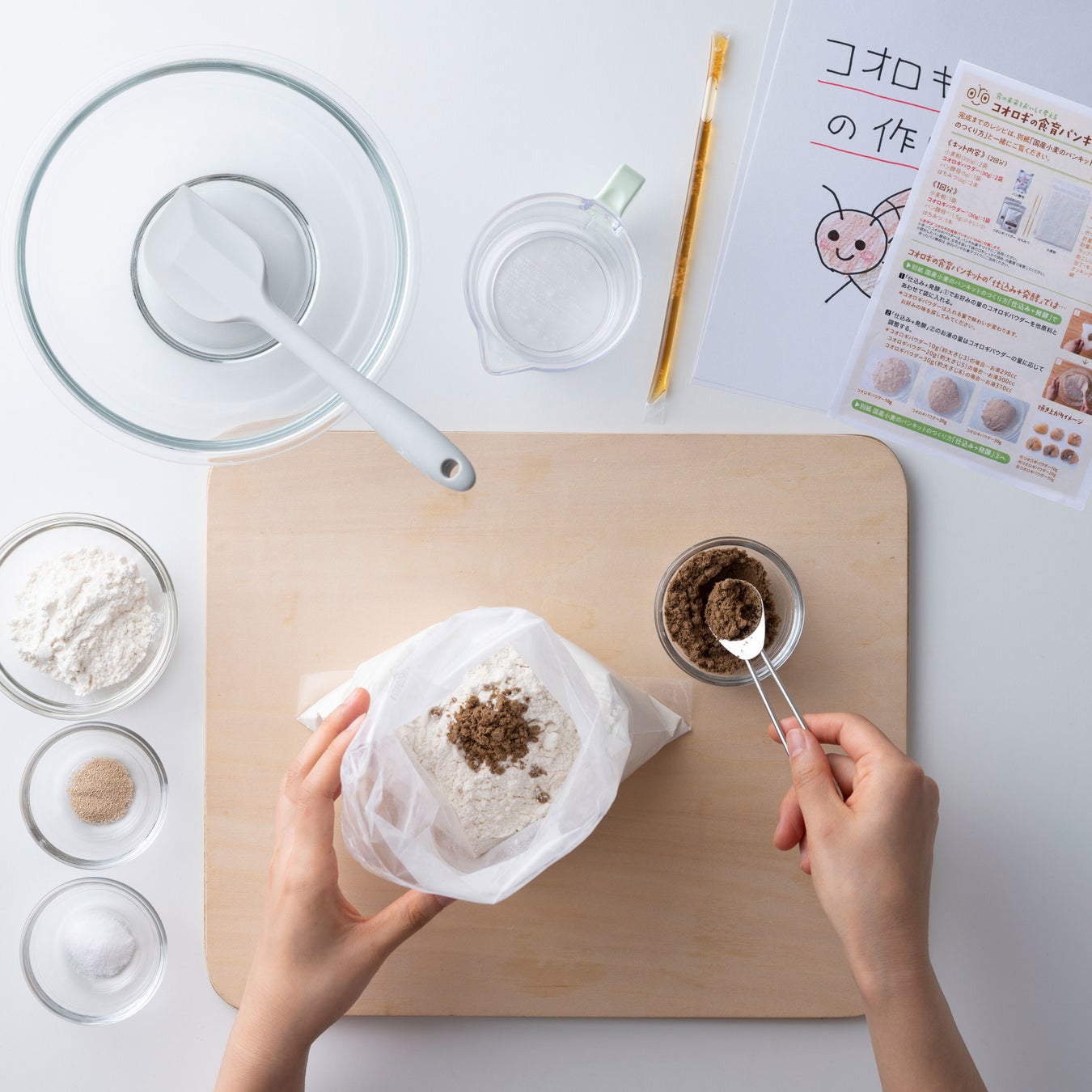 内容:食用コオロギパウダー、北海道産小麦の小麦粉「春よ恋」、とかち野酵母、北海道産蜂蜜、食の未来 食育リーフレット、レシピリーフレット