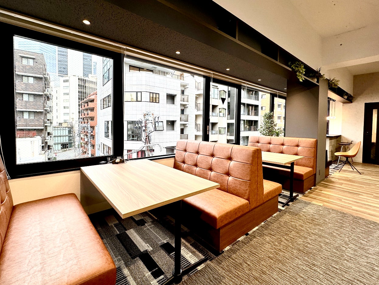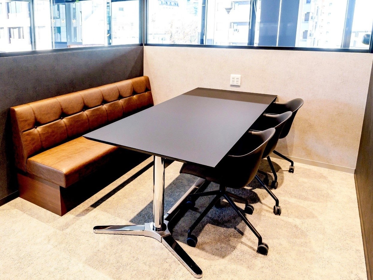 同物件は、角地に位置し、二面採光を備えた貸室のため、明るく開放感のある執務スペースが魅力的なオフィスです。従業員10~20人ほどのスタートアップ企業をターゲットとし、約58坪のスペースに、会議室を2室、オンラインミーティング等に利用できる個室を2室、その他にもファミレス席と呼ばれる4人用の席や、軽食やリフレッシュに利用いただけるドライパントリーなどを備えました。