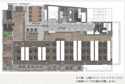 従業員用の執務デスクはあえて用意はせず、ご入居者様にご用意いただくようにすることで、従業員の増加などに柔軟にご対応いただけるハーフセットアップオフィスです。