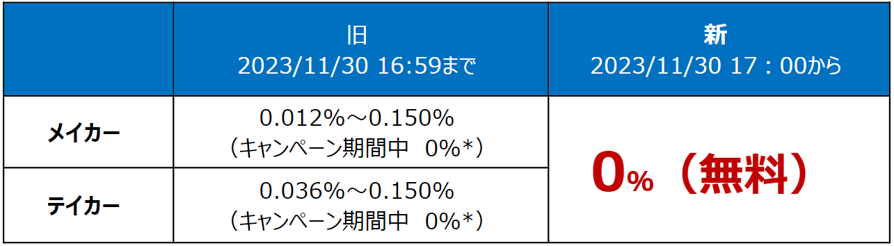 *「取引所取引手数料無料キャンペーン」実施につき2023/11/30 17:00まで取引手数料は無料です。