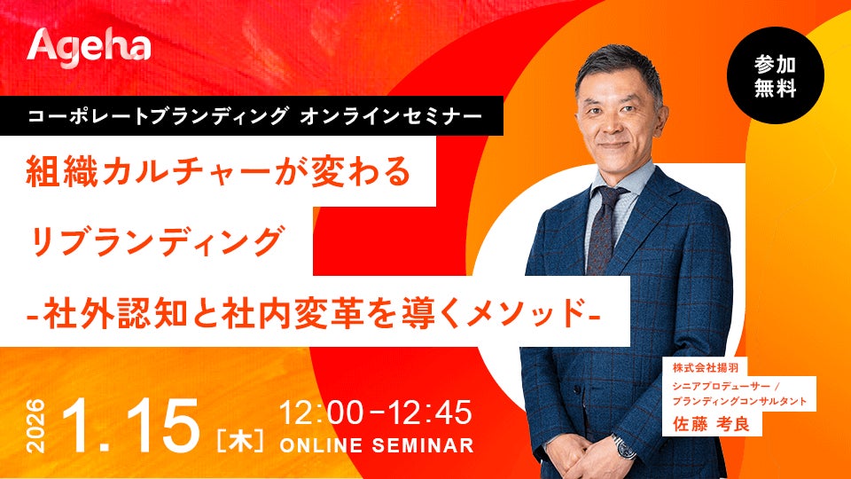 コーポレートブランディング支援を行う株式会社揚羽(東京都中央区 代表取締役社長:湊 剛宏 証券コード:9330)は、2025年12月11日(木)に「組織カルチャーが変わるリブランディング -社外認知と社内変革を導くメソッド-」と題したセミナーを、オンラインで開催します。