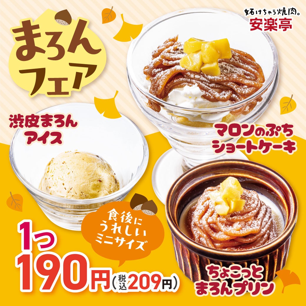 株式会社安楽亭(本社:埼玉県さいたま市)は、2025年10月8日(水)より秋限定「秋のデザート まろんフェア」を開催いたします。