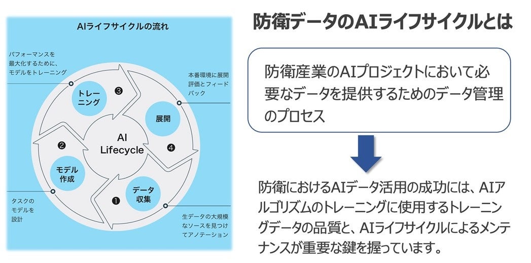 AOS IDXでは、こうしたAIライフサイクルの仕組みに基づき、AIデータにおけるAIシステムのためのAIデータ管理を行い、防衛に関わる膨大なデータがあって初めて優秀なAIシステムを実現できるというData to AI®︎のコンセプトの元、AOS IDXによって、防衛産業の効率化に向けたプラットフォーム構築を支援します。