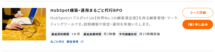 一方で、社員数10名未満の中小企業では「導入後、運用できる人材がいない」ため、十分に運用できていません。このような背景を受け、中小企業向けに「スモールBPO」で「Hubspot運用代行コース」の提供を開始しました。