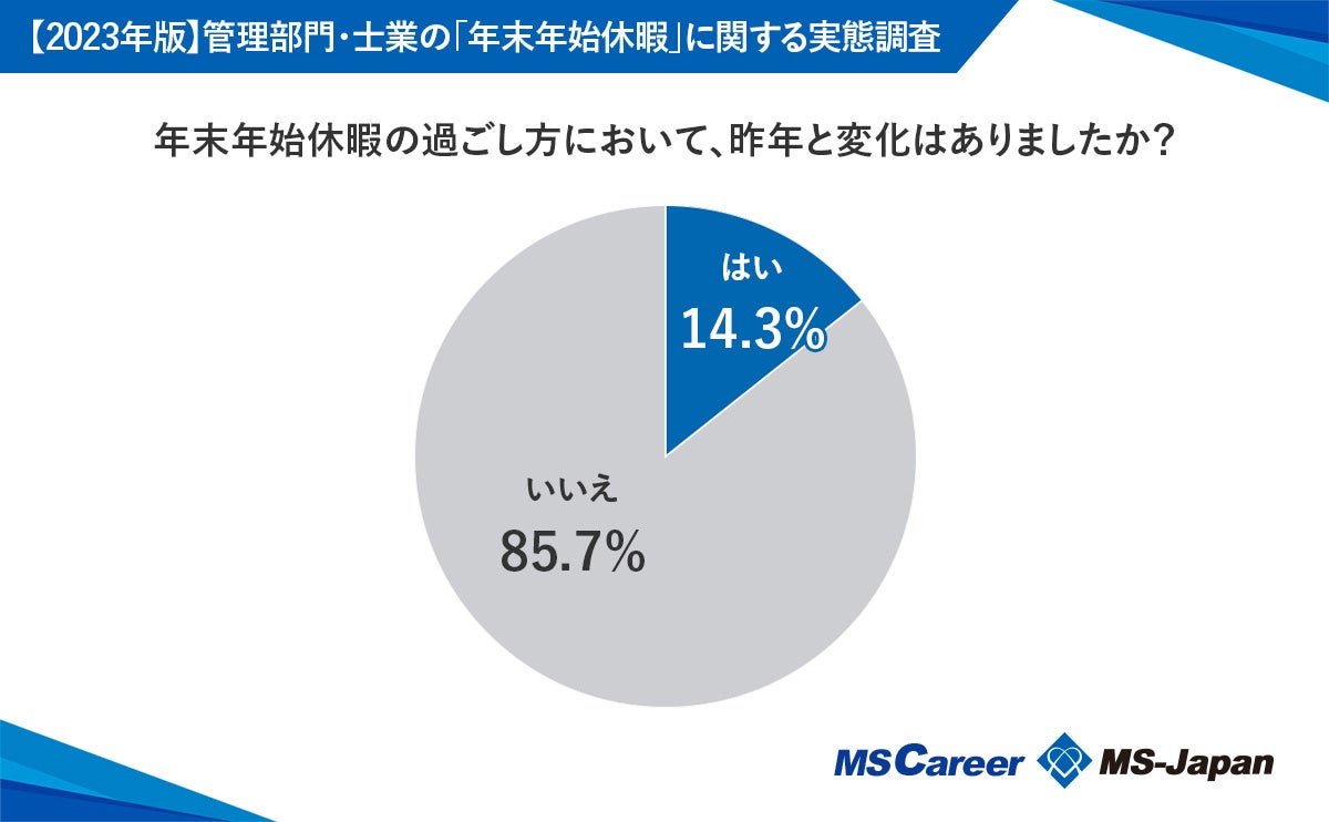 年末年始休暇の過ごし方において昨年と変わると回答した人は全体の14.3%でした。
