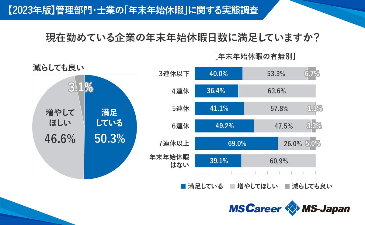 【年末年始休暇の日数は50.3%が「満足している」と回答】