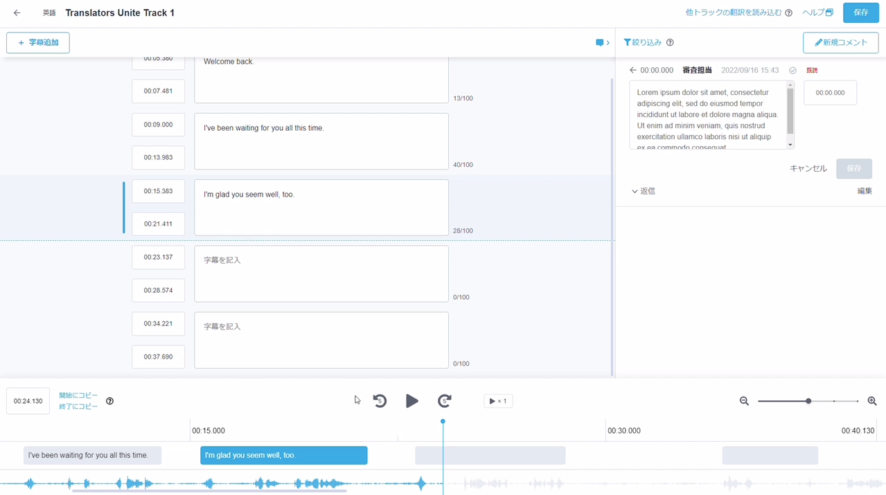 どなたでもスムーズに音声の翻訳作業ができる環境を提供することで、翻訳者の活動を応援し、翻訳作品のご制作を促進いたします。