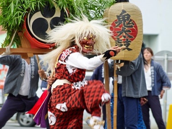 五穀豊穣の祈願や厄払いを目的とした佐渡の伝統芸能の一つです。島内各地100以上の集落で行われる春祭りの際に、地元の鬼太鼓が集落の1軒1軒を回り舞い踊る「門付け」を行います。踊りの型は大きく「豆まき流」「一足流」「前浜流」「花笠流」「潟上流」の5つに分けられますが、同じ型でも踊り方や太鼓の叩き方が微妙に異なります。また、佐渡の鬼面には基本的にがなく、面や髪の色も集落ごとに違います。