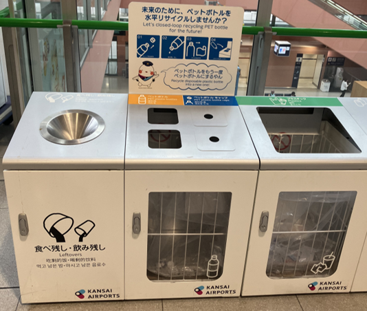 関西エアポートグループでは、環境計画(環境ビジョン2050・環境目標2030)の軸の1つである「循環経済」の主要な取り組みとしてプラスチックの削減・素材の転換・水平リサイクルを掲げており、2023年7月より、空港内6カ所にペットボトル水平リサイクル用の回収ボックスを設置しています。このイベントを通じて、ペットボトルの水平リサイクルとその分別について、より多くのお客さまに知っていただくことを目的としています。