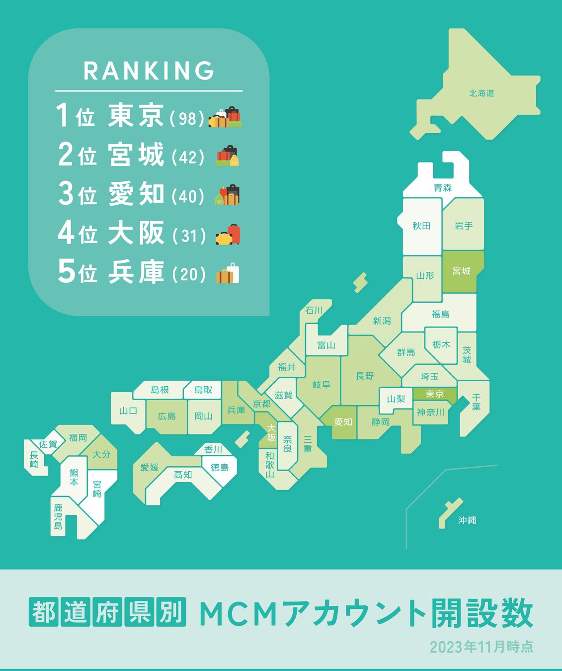 現在全国44の都道府県内の自治体や事業者に導入されており、エリア別のアカウント開設数のランキングは以下の通りです。