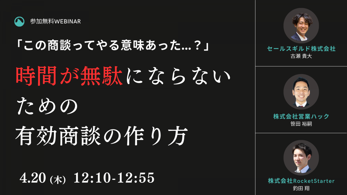 「この商談、意味ある?」をなくす!時間が無駄にならないための有効商談の作り方をお伝えします【4/20(木)12:10~無料ウェビナー】