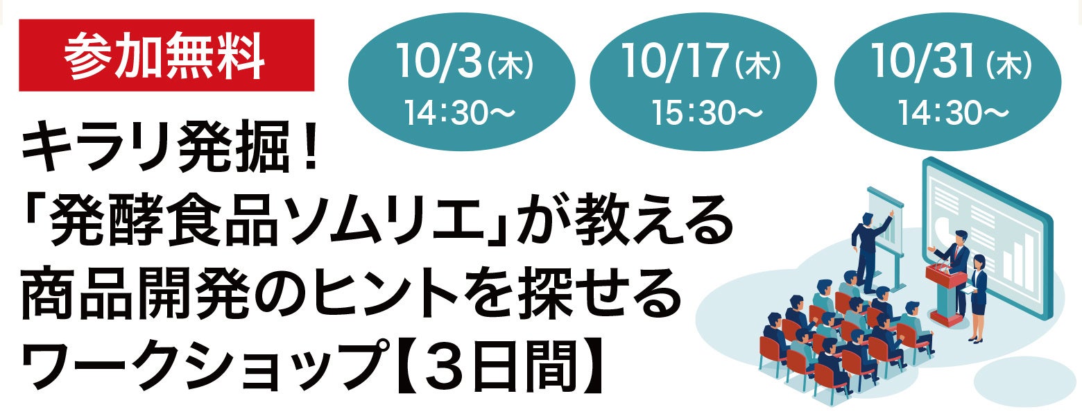 【参加無料】「キラリ発掘!発酵食品ソムリエが教える商品開発のヒントを探せるワークショップ」開催!