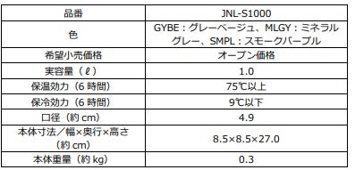 1.0Lの大容量サイズには中高生から成人の方まで幅広い年代が使いやすいグレーベージュ、ミネラルグレー、スモークパープルの3色をご用意しました。