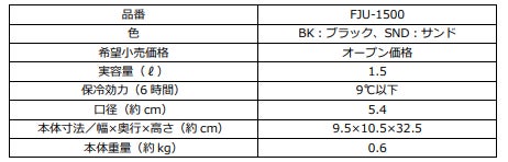 『真空断熱スポーツボトル(FJUシリーズ)』はスポーツシーンで使いやすく、ポーチがないシンプルな形状がお客様よりご好評をいただいております。サイズは0.75L、1.0Lを展開していますが、このたび大容量である1.5Lサイズを新発売します。