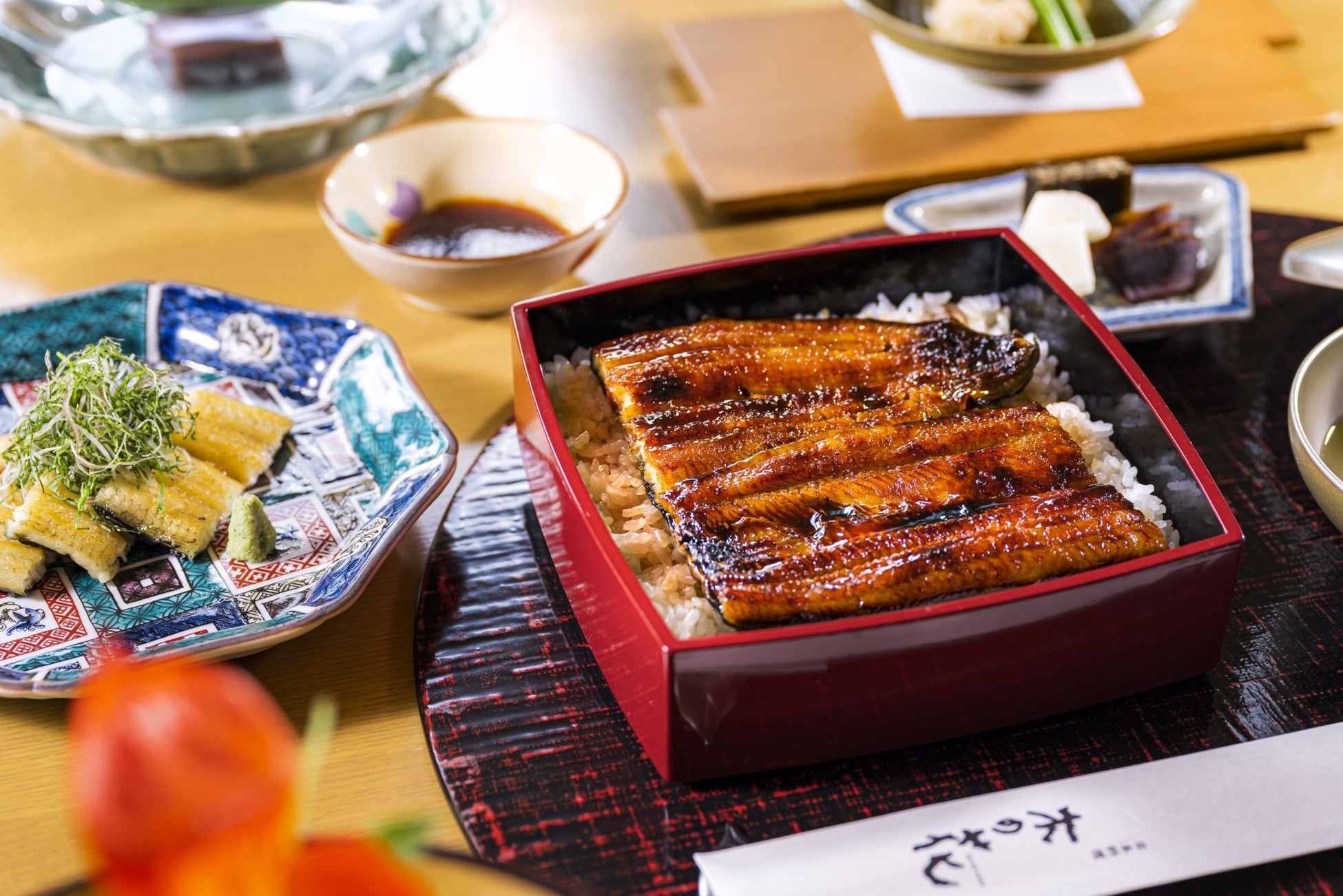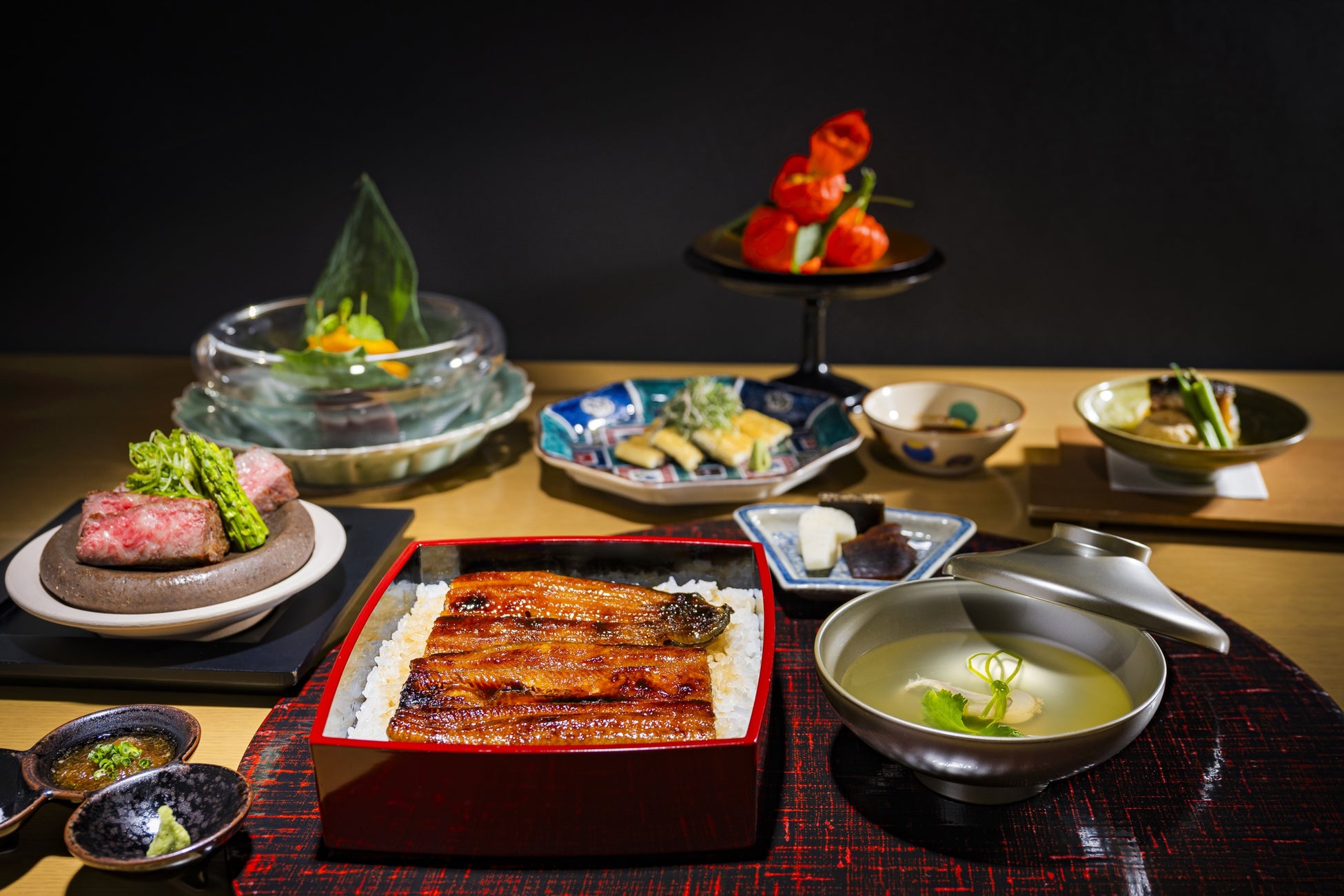 ホテルの8階にありながら、四季折々の情景が楽しめる日本庭園を構える日本料理「木の花」。旬の素材と伝統の技が織りなす本格和食を完全個室でお楽しみいただけることも人気のレストランです。今年もいよいよ夏到来の兆しを前に、毎年人気のスタミナ食材「鰻」を使用したメニューを販売いたします。土用の丑の日が2回ある本年は、まさに“うなぎ月”。特別会席「鰻づくし会席」は、食欲の落ちやすい盛夏にふさわしいさっぱりとした「鰻ざく」から始まり、炭火で香ばしく焼き上げた「白焼き」、上品な旨味が広がる「鰻の煮物」、そして贅を尽くした「鰻重」まで、お料理すべてに国産鰻を用いたこだわりの“鰻づくし”をご提供。土用の丑の日のランチタイム特別会席として、7月19日(土)と31日(木)の2日間限定にてご賞味いただけます。また、1ヶ月間ご提供いたします「鰻・牛肉会席」は、国産鰻と黒毛和牛、二つの味覚を一度に楽しめるスタミナあふれるディナー会席。夏の訪れを感じさせる「鬼灯(ほおずき)」をあしらった前菜や、旬の「玉蜀黍(とうもろこし)」の揚げ物、夏野菜の冷たい煮物など、季節感あふれる逸品を揃えました。きめ細やかな霜降りと、やわらかな舌ざわりが魅力の「米沢牛の石焼き」を堪能いただいた後は、自慢の出汁で仕立てた「肝吸い」と料理長こだわりのたれでじっくり焼き上げた「鰻重」をお召し上がりいただきます。