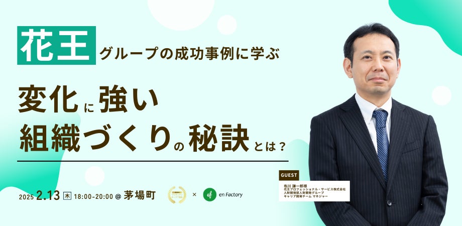 一般社団法人プロティアン・キャリア協会(東京都新宿区、代表理事:田中研之輔・有山徹、以下「当協会」)は、組織と個人のより良い関係構築と個人の主体的なキャリア開発を支援する団体です。このたび株式会社エンファクトリー(東京都千代田区、代表取締役:加藤健太、以下エンファクトリー)と共に、2月13日(木)18:00より、オフラインイベント「花王グループの成功事例に学ぶ、変化に強い組織づくりの秘訣とは?」を開催します。
